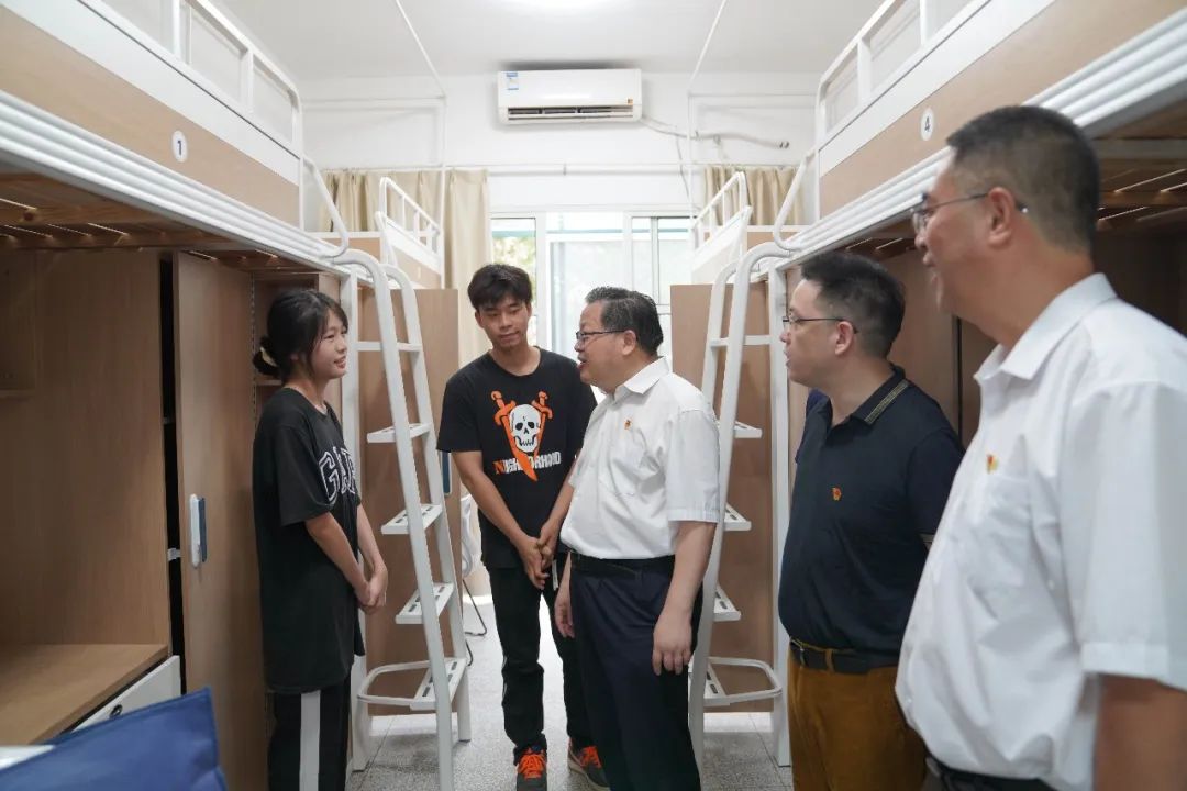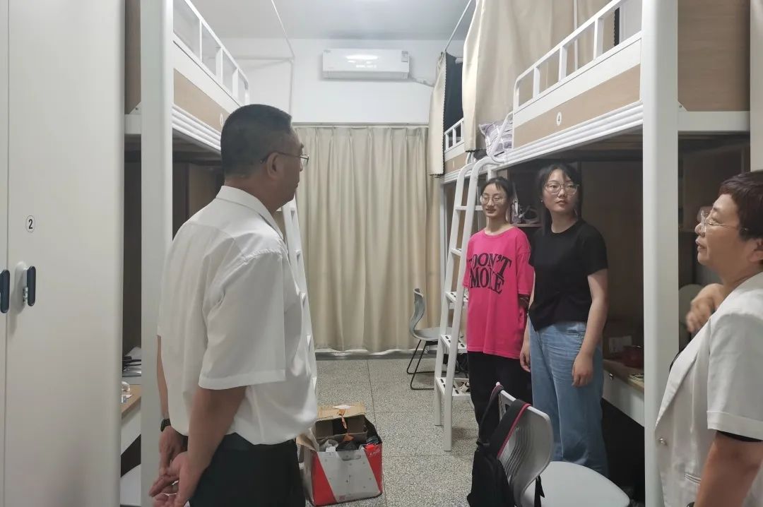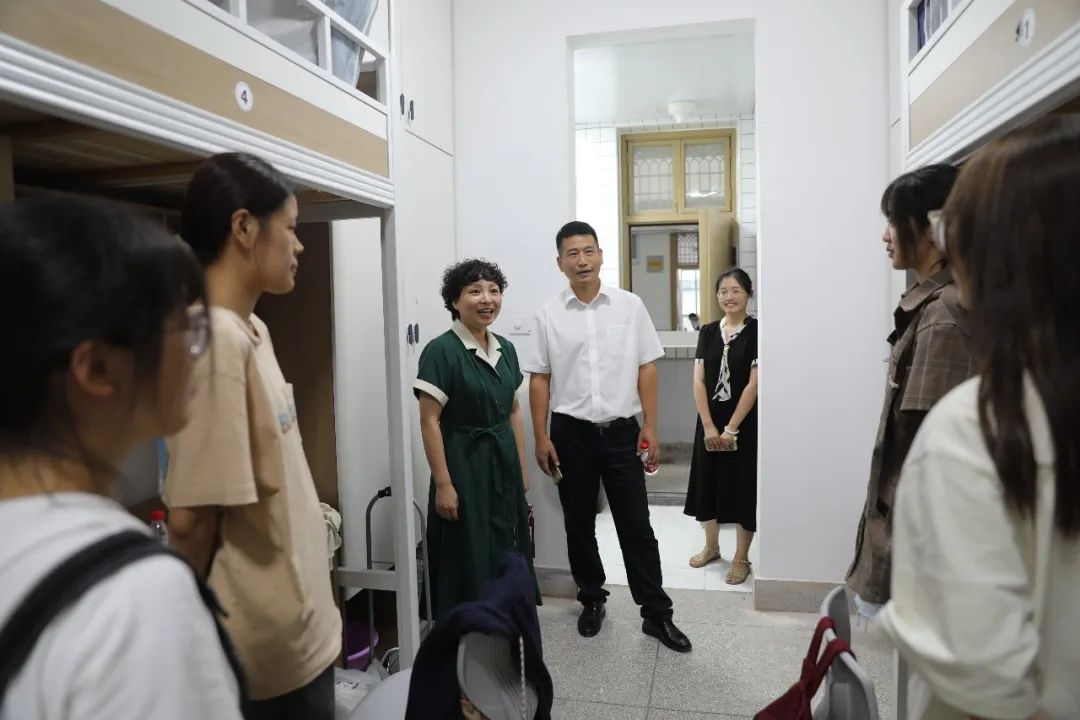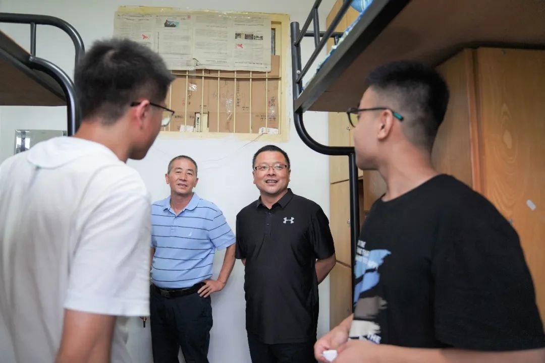 盛付祥、贾文胜一行还来到新生寝室,深入了解新生住宿安排和入住情况。走访中,校领导与新生们亲切交谈,鼓励大家要提高防范意识,加强体育锻炼,养成良好生活习惯,保持积极乐观的心态,更要做好学业和未来职业生涯的规划,珍惜时光、保持定力,争取早日为国家发展作出自己的贡献。
