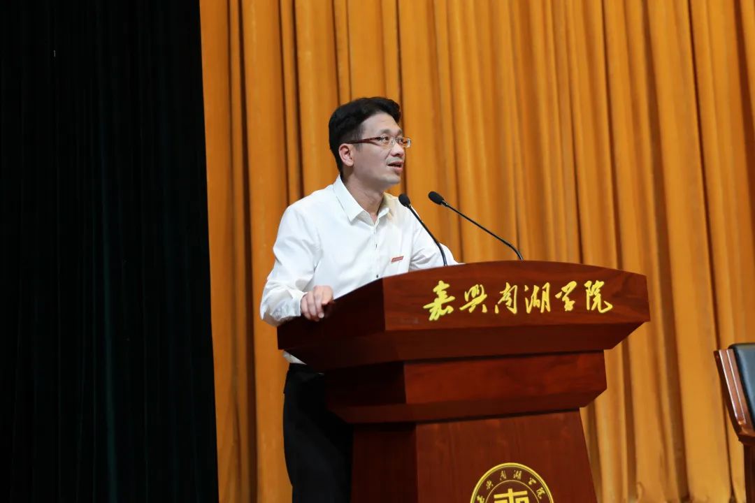 嘉兴市政协副主席、校党委书记盛付祥作题为“坚定信心 勇猛精进 迈上特色鲜明国内一流应用型大学新征程”的讲话。他从“党的建设成效、发展蓝图路线、教学内涵建设、生源质量提升、人才引进突破、对外合作开局、办学条件改善”七个方面回顾了学校在过去一年多各项事业取得的长足进展。从“红色大学的样本、城市大学的标杆、产业伙伴型大学的典范”阐释了学校的发展战略。他表示,学校将持续深入推进体制机制创新,为全体教职员工创造更好的工作条件、更优的成长环境。