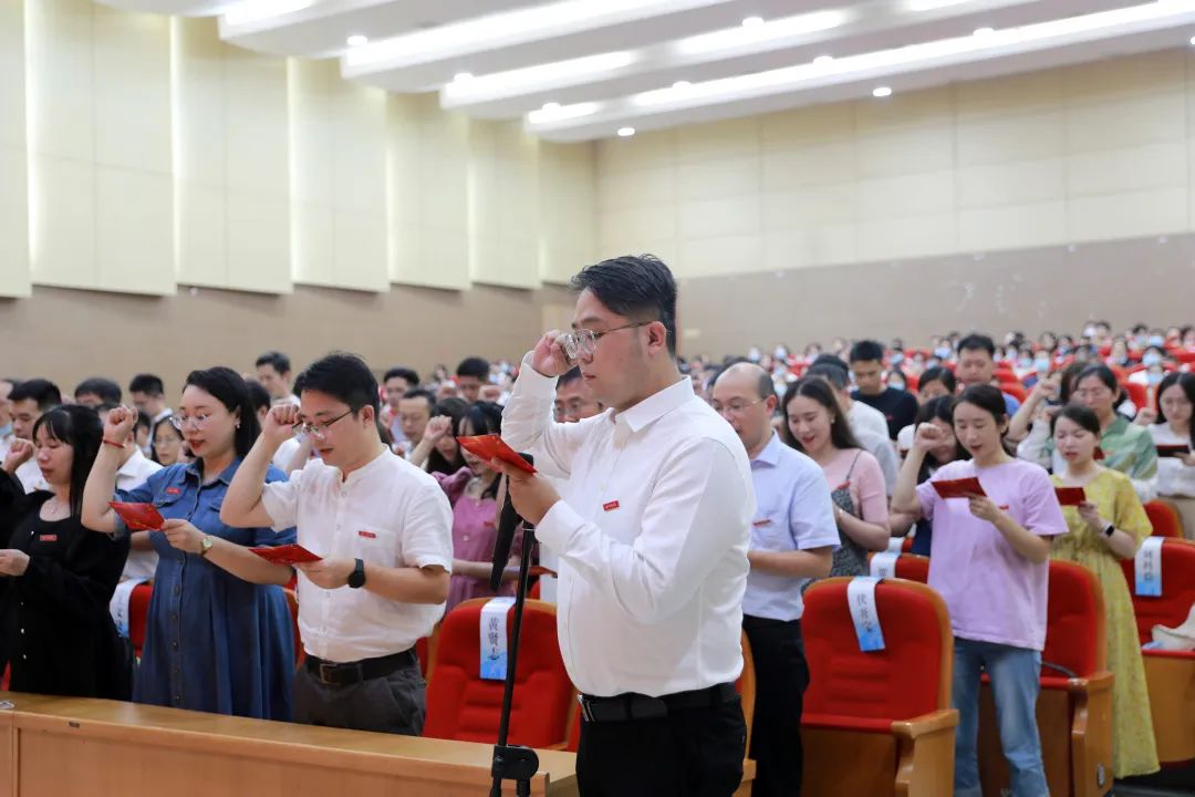 会上,新教师代表苗天长带领全体新教师进行了宣誓,表示将忠诚党的教育事业,贯彻国家教育方针,履行教师神圣职责,为全体学生美好未来奉献全部智慧和力量。来自现代金融学院的优秀教师代表吴政仲结合岗位实际和工作体会,讲述了立德树人的使命和担当。优秀教育工作者严甜甜分享了自己的工作经验和感悟。营销N211班的周子钰同学作为学生代表发言,为广大教师送上了最真诚的敬意与祝福。