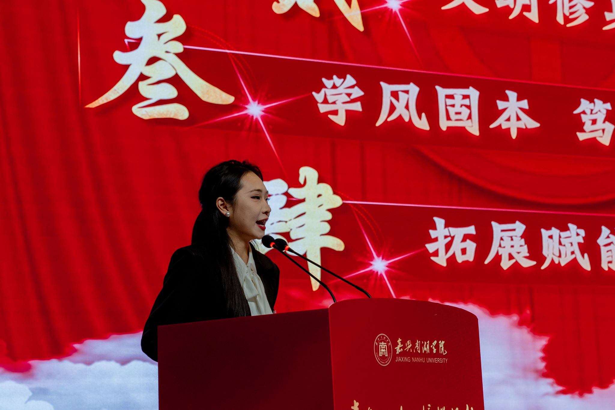 标兵班级思政232班成员代表项玺雅同学全面展现了班级在思想建设、学风营造、集体活动等方面的卓越风采,真正贯彻了“思政明理,笃学践行”的班训精神。