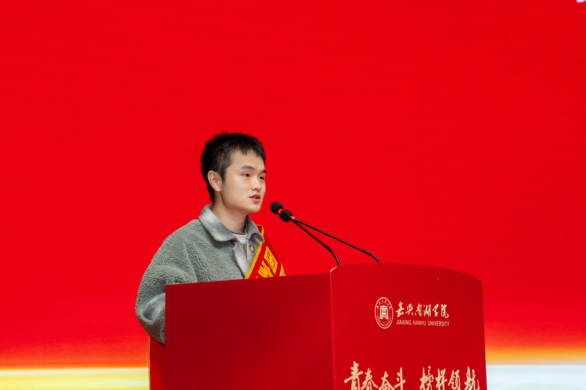表彰环节结束后,大会进入优秀代表风采展示与经验分享阶段。国家奖学金获得者自动化231班谢佳硕作为优秀学生代表,结合自身经历,分享了其在专业学习、时间规划与自我提升方面的宝贵经验。