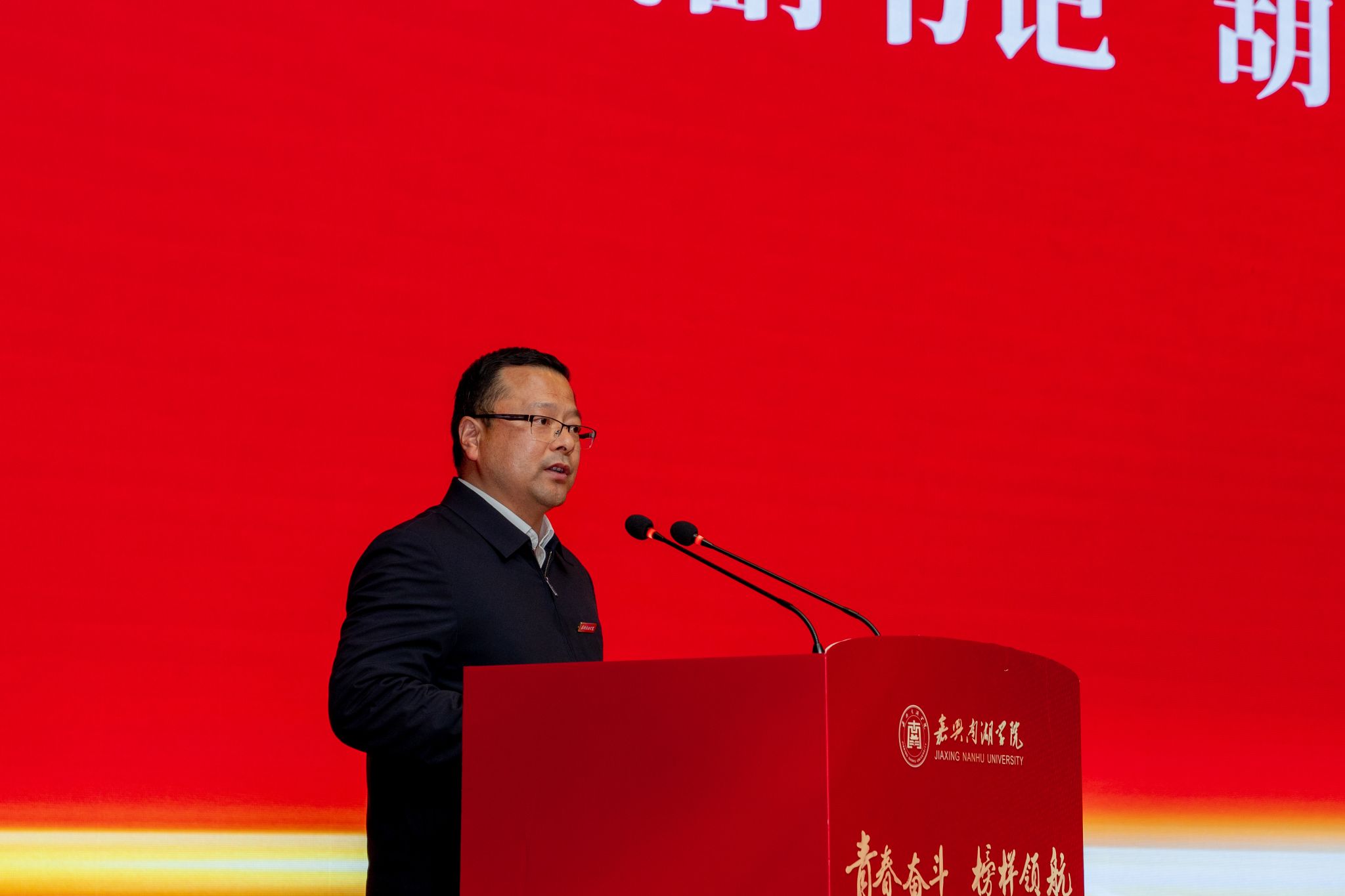 校党委副书记胡文蔚发表讲话,首先代表学校党委向所有受表彰的团队与个人表示热烈祝贺,向辛勤耕耘、教书育人的全体教职员工致以衷心的感谢。他强调,榜样是最鲜活的力量,受表彰的每一位同学、每一个集体都是一面旗帜、一座灯塔,他们的故事可学可做,经验可鉴可循。同时,胡书记寄语全体同学要心怀热忱、锚定目标、不惧挑战,在感知美好中向阳生长,在坚守初心中踏实前行,在敢闯敢拼中超越自我。他勉励全体同学以先进为榜样,将今日的荣誉转化为明日奋进的动力,让青春在为祖国、为人民的不懈奋斗中绽放绚丽之花。