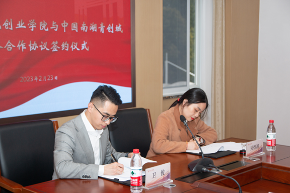 为进一步增强创业学院创新创业发展动力,2023年2月23日下午,我校创业学院与中国南湖青创城签订了战略合作协议,双方就对科技成果转化、大学生创业、大学生实习等方面达成了一致。