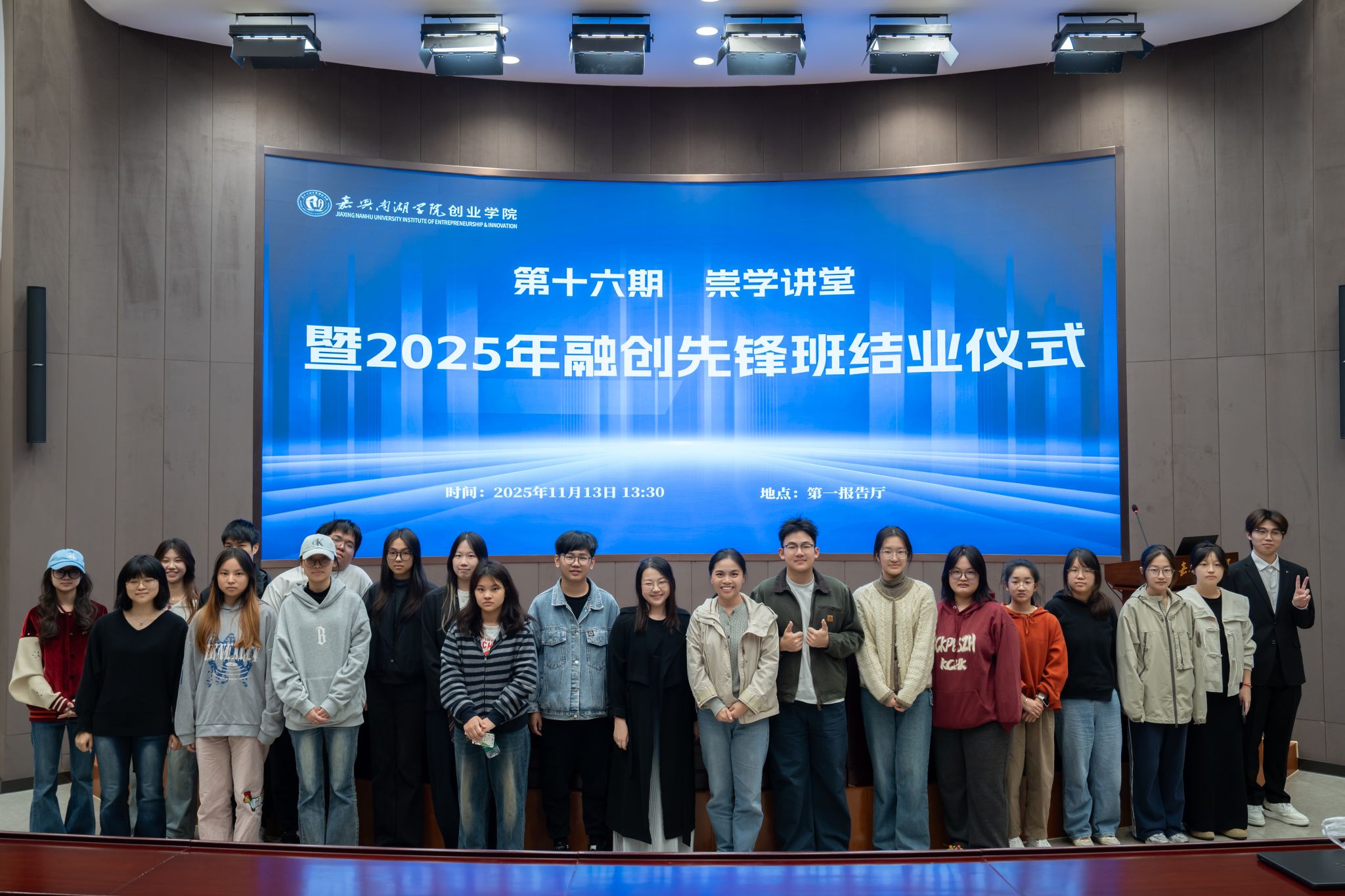 11月13日13:30,嘉兴南湖学院第十六期崇学讲堂暨融创先锋班结业仪式在第一报告厅顺利举行。本次活动以创新创业实践为核心,将成果展示与经验传承相结合,为先锋班学员的阶段性学习画上圆满句号,也为在场观众带来了一场兼具思想深度与实践价值的创新盛宴。