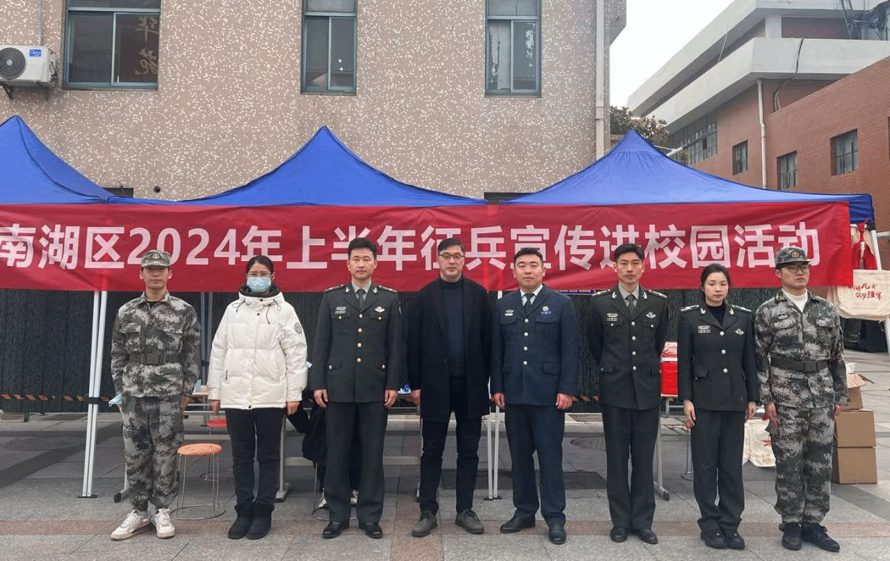 1月9日,嘉兴市南湖区人武部来我校举办征兵宣讲进校园活动。我校学生工作部副部长章马良、征兵工作负责人郭小雨参加此活动。