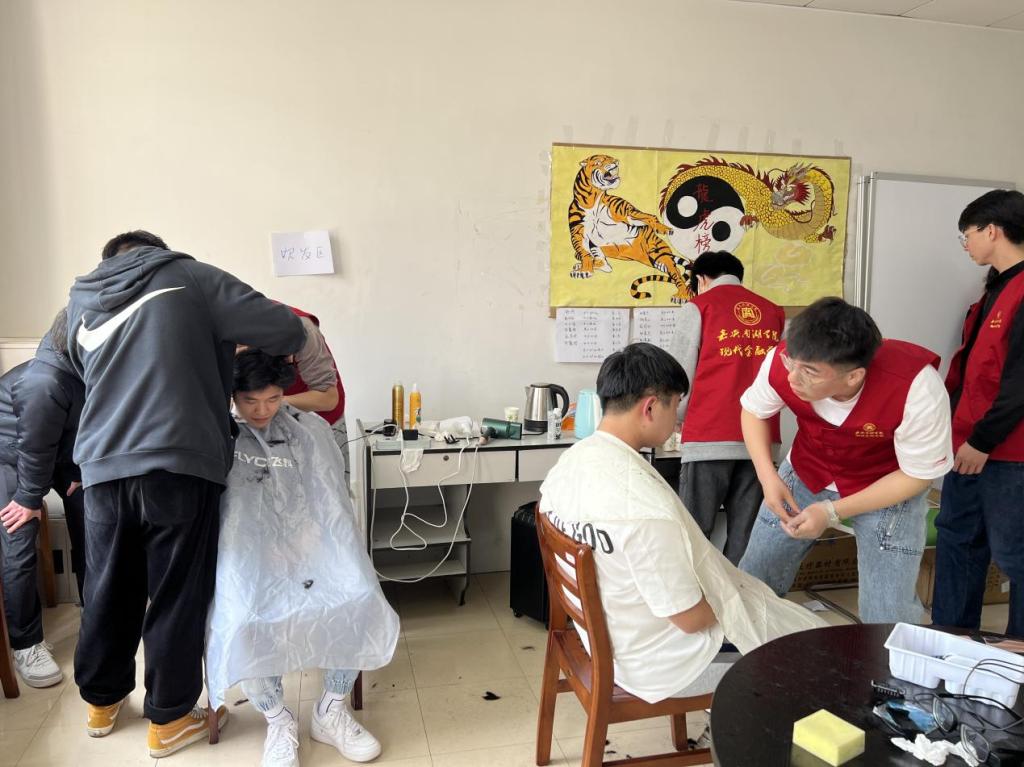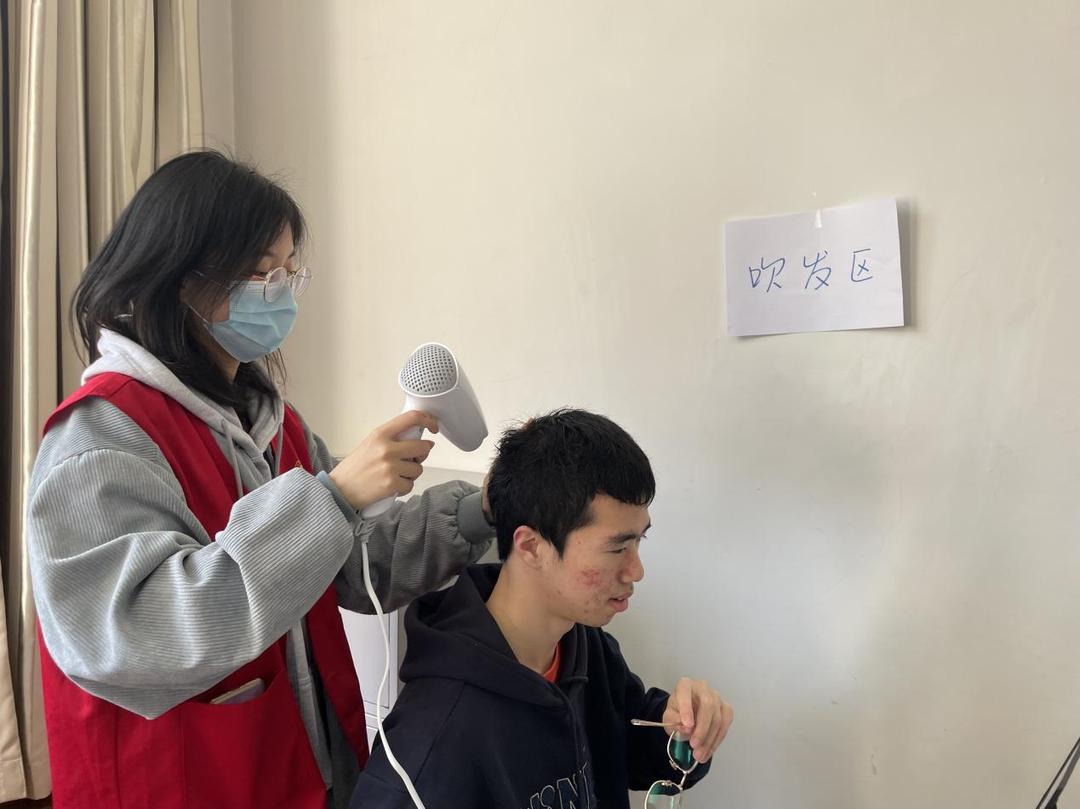 封校时间久了,很多男同学无法出校理发成了一个问题。现代金融学院的老师了解到同学们的现实需求,积极组织对理发有兴趣或擅长理发的学生成立志愿服务小分队,于4月2日在现代金融学院学生活动中心开设了临时“发廊”,安排了“洗剪吹”一条龙免费服务。